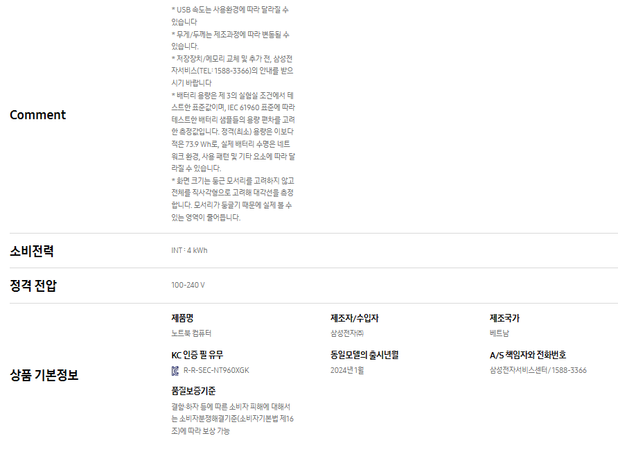 중요 성능이며 자세한 정보는 아래 사진을 참고하세요
