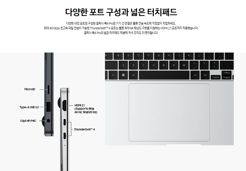 포트: 1HDMI 2.1,2 Thtnderbilt4,1usb3.2 마이크로SD 멀티미디어 카드리더