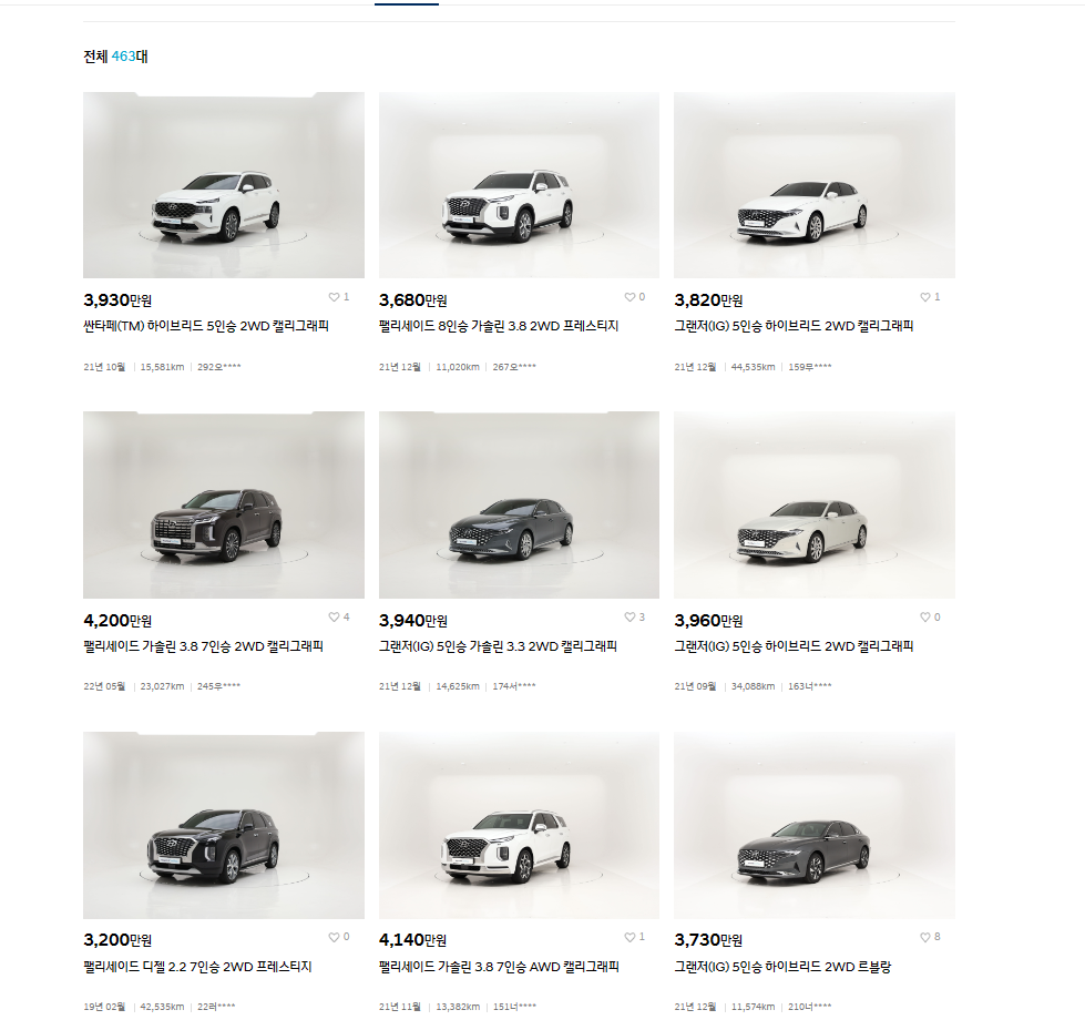 - 실시간으로 업데이트되는 차량 정보와 사진을 확인할 수 있습니다.